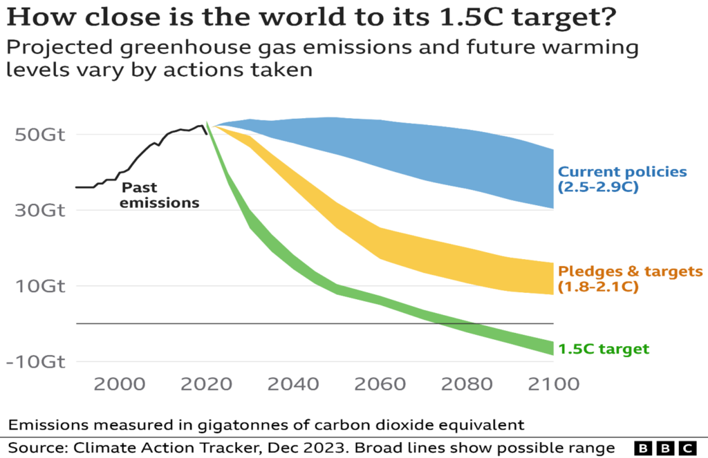 Hầu hết các quốc gia đều có hoặc đang cân nhắc các mục tiêu ròng bằng 0. Tuy nhiên, theo IPCC, mức khí thải nhà kính vẫn đang gia tăng nhanh chóng và thế giới “có thể” nóng lên vượt quá 1,5°C.
